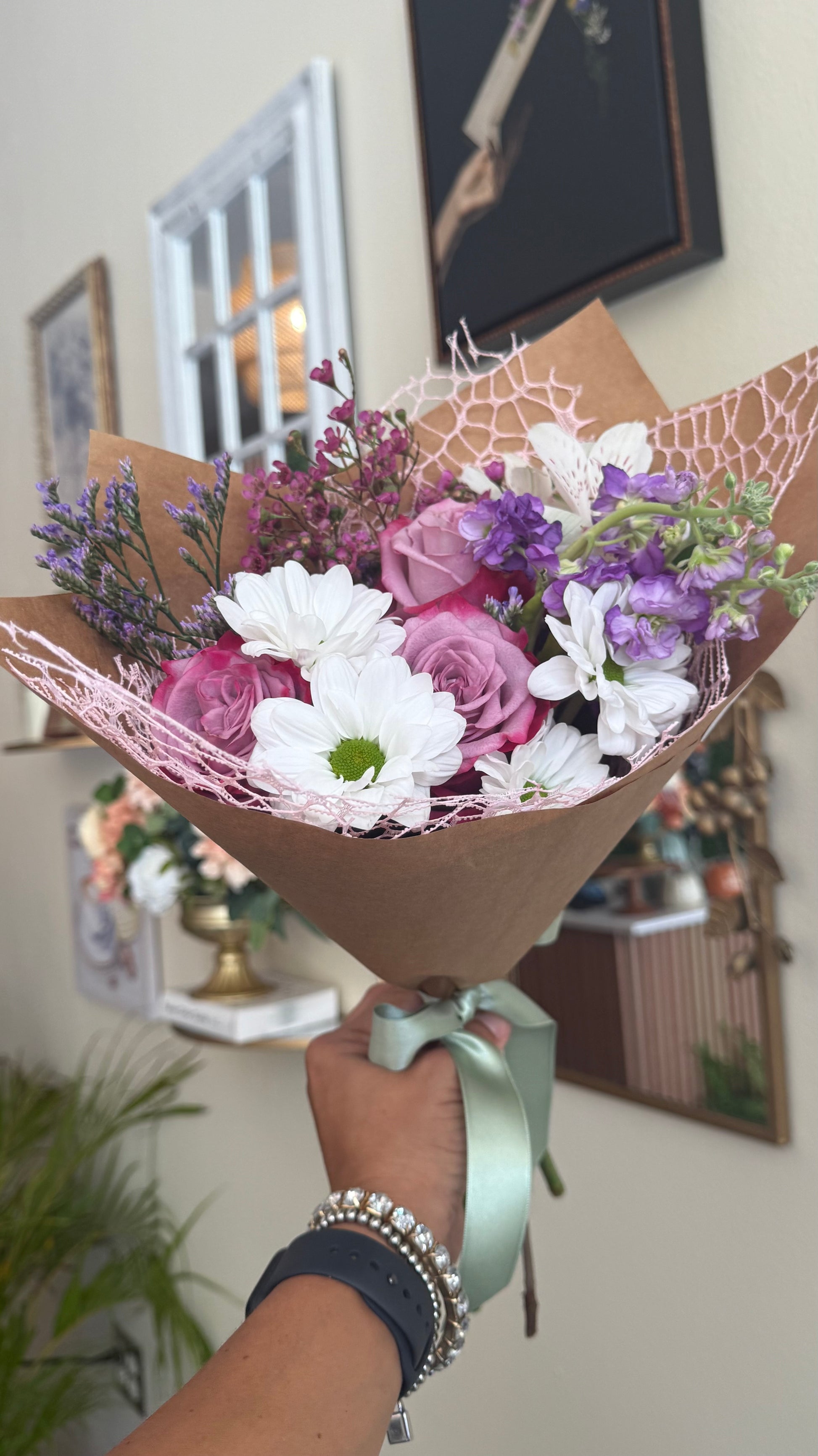 Nota: Todos nuestros “bouquet” de flores mixtas quedan diferentes, son realizados de acuerdo con la disponibilidad de las flores al momento. Si desea algún color o flor en particular puede añadir una nota y si está disponible podemos incluirlo en su arreglo.